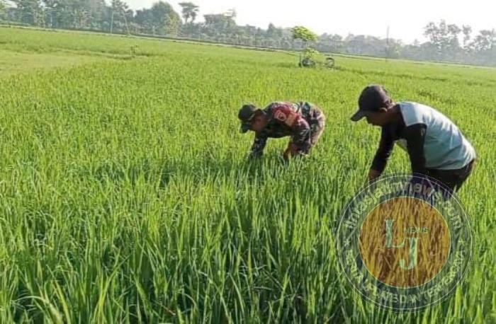 Sebagaimana dilakukan Sertu P. Dwi anggota Koramil Tipe B 0802/03 Babadan, Kodim 0802/Ponorogo yang setiap hari bertugas menjadi Babinsa Kelurahan Kertosari Kecamatan Babadan yang hari ini turun ke sawah membantu petani yang sedang merawat tanaman padi.