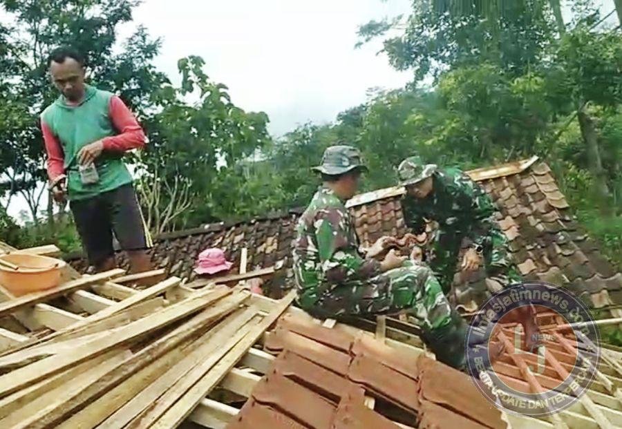 Tak Diragukan Lagi, Satgas TMMD 127 Kodim Wonogiri Cekatan Rehab Atap Rumah Milik Sarikem