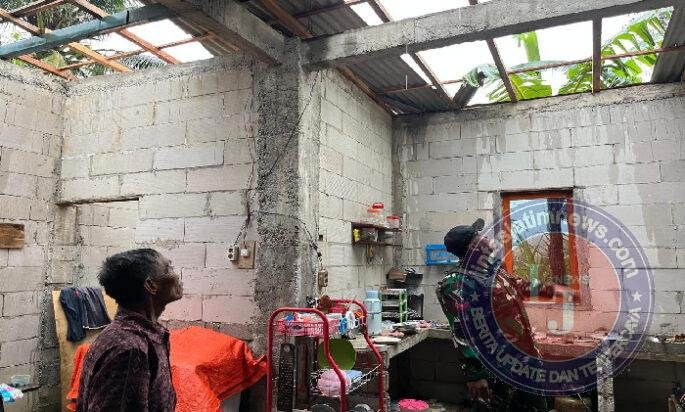 Selain melakukan pendataan kerusakan, Koptu Agung juga turut membantu mengamankan barang-barang milik korban agar tidak semakin rusak akibat guyuran hujan. Bersama warga sekitar, ia bergotong royong memindahkan perabot rumah tangga ke bagian rumah yang lebih aman serta menutup sementara bagian atap yang terbuka menggunakan terpal seadanya.