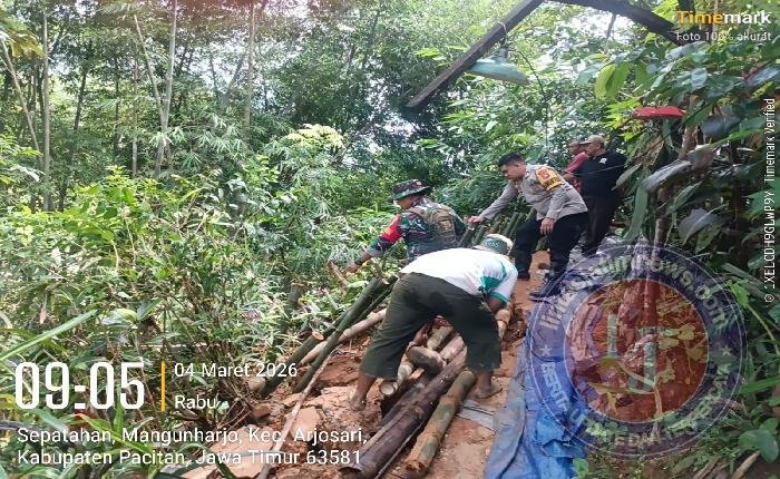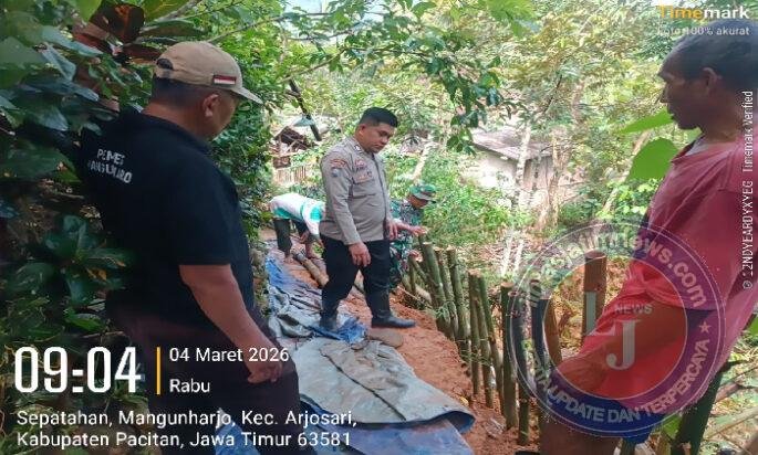 PACITAN lintasjatimnews – Intensitas curah hujan yang cukup tinggi di wilayah kabupaten Pacitan, mengakibatkan longsornya tebing jalan bawah rumah warga di Dusun Tegal RT 001/RW 005 Desa Mangunharjo, Kecamatan Arjosari, Kabupaten Pacitan, Selasa (3/3/2026) malam, Kejadian ini mengakibatkan jalan depan rumah warga atas nama Endri daniel widiantoro mengalami longsor.
