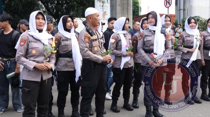 JAKARTA lintasjatimnews.com – Pemandangan berbeda terlihat dalam pengamanan penyampaian aspirasi oleh kelompok mahasiswa di depan Mabes Polri, Jumat (27/2). Memasuki bulan suci Ramadhan, Polda Metro Jaya menerapkan pola pengamanan progresif yang jauh dari kesan kaku. Alih-alih barikade yang intimidatif, para personel yang bertugas justru tampil religius dengan mengenakan peci dan syal bagi polisi laki-laki, serta jilbab bagi Polwan, sebagai bentuk penghormatan terhadap kekhidmatan bulan puasa.