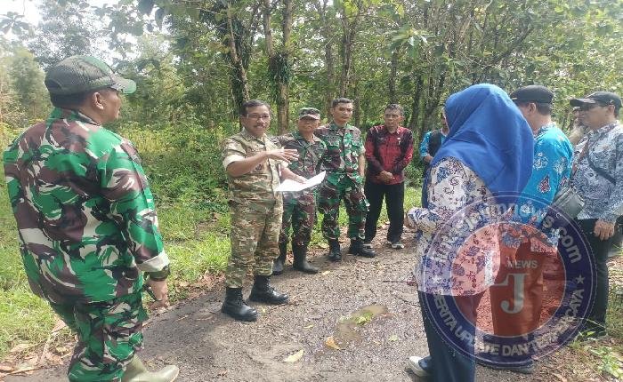 Kemudian di lanjutkan dengan melaksanakan peninjauan serta survey titik koordinat, Batas serta mengecek kelayakan Lahan Rencana Pembangunan Yon TP (Batalyon Teroterial Pembangunan) dilahan Perhutani tersebut.