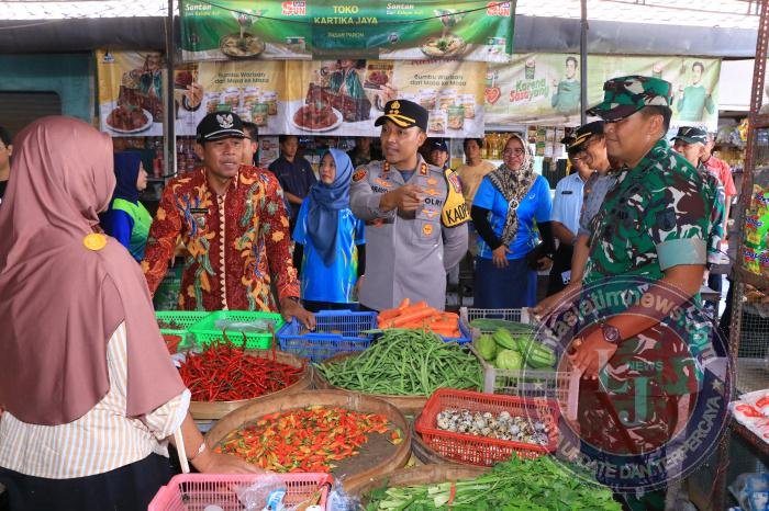“Kami bersama Forkopimda turun langsung ke pasar untuk memastikan harga bahan pokok tetap stabil dan ketersediaannya mencukupi bagi masyarakat,” ungkapnya.