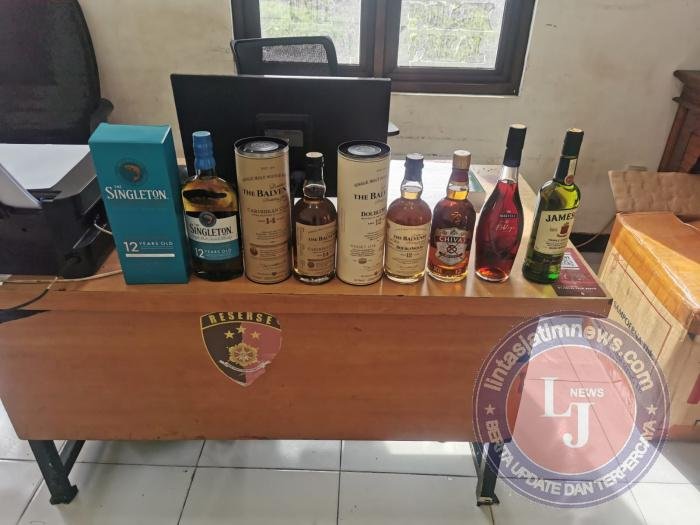 Selain itu Polisi juga menyita berbagai jenis minuman beralkohol, mulai dari produk impor hingga puluhan botol arak Bali yang dikemas dalam botol air mineral.