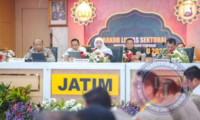 Rakor tersebut dipimpin langsung oleh Kapolda Jawa Timur Irjen Pol Drs. Nanang Avianto, M.Si dengan dihadiri unsur Forkopimda, para PJU Polda Jatim, Kapolres jajaran, intansi terkait dan tokoh agama serta tokoh masyarakat.