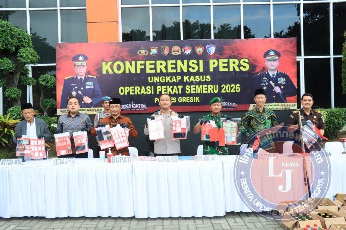 Kapolres Gresik AKBP Ramadhan Nasution memimpin langsung konferensi pers hasil ungkap kasus tersebut di halaman Mapolres Gresik pada (12-3-2026)Kamis sore. Operasi yang berlangsung sejak 25 Februari hingga 8 Maret 2026 ini menyasar sejumlah bentuk pelanggaran hukum yang kerap meresahkan masyarakat, seperti premanisme, perjudian, peredaran narkoba, hingga minuman keras ilegal.