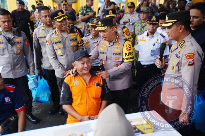 SURABAYA lintasjatimnews.com – Kapolri Jenderal Listyo Sigit Prabowo meninjau Terminal Purabaya Bungurasih, Sidoarjo, Jawa Timur, Minggu (15/3/2026) terkait pengamanan dan pelayanan masyarakat dalam rangka arus mudik Lebaran 2026.