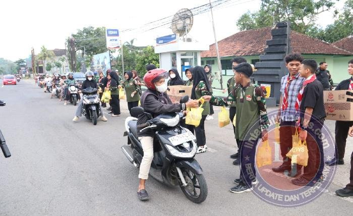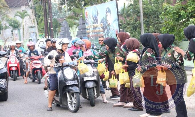 TRENGGALEK lintasjatimnews – Suasana menjelang waktu berbuka puasa di depan Makodim 0806/Trenggalek, Selasa sore (17/3/2026), tampak berbeda dari biasanya. Sejumlah anggota Pramuka Saka Wira Kartika binaan Kodim 0806/Trenggalek berdiri di tepi jalan sambil membawa paket makanan berbuka puasa yang siap dibagikan kepada masyarakat yang melintas. Kegiatan bertajuk Ramadan Berbagi Takjil itu menjadi bagian dari upaya mengisi bulan suci Ramadan dengan aktivitas sosial yang bermanfaat dan menumbuhkan kepedulian antarsesama.