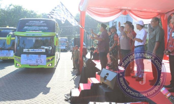 Tepat pukul 08.00 WIB, jajaran Forkopimda secara simbolis melepas keberangkatan bus pertama. Satu per satu armada mulai meninggalkan halaman Pemkab Gresik dengan pengawalan petugas untuk memastikan perjalanan berjalan aman dan tertib.