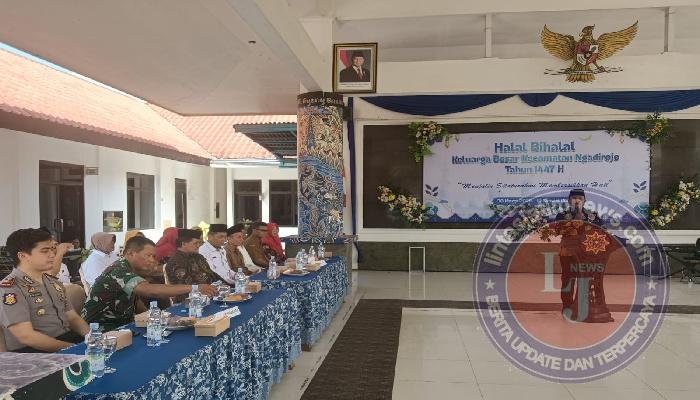 PACITAN lintasjatimnews –  Dengan Suasana penuh kehangatan dan kebersamaan mewarnai kegiatan Halal Bihalal 1447 H  yang digelar di Pendopo Kecamatan Ngadirojo. Acara tersebut dihadiri oleh Danramil 0801/08 Ngadirojo Kapten Czi Gutarno bersama jajaran Forkopimca Kecamatan Ngadirojo serta berbagai unsur pimpinan wilayah. Momentum ini menjadi ajang mempererat tali silaturahmi pasca Hari Raya Idulfitri. Senin (30/3/2026).