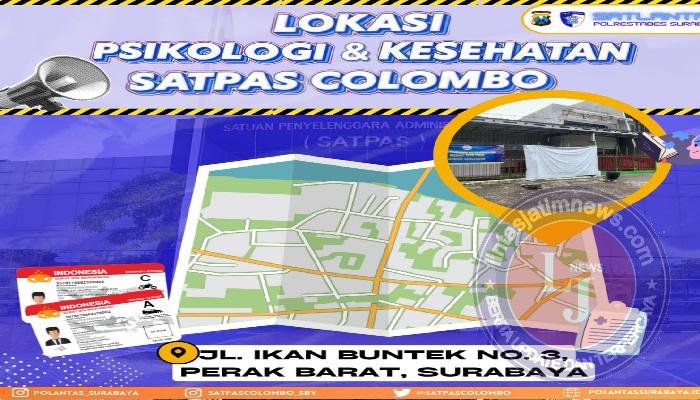 Terkait perihal tersebut di atas, Kanit Regident Satpas SIM Colombo yakni AKP Tri Arda Meidiansyah, S.TR.K, Sik, melalui Kasubnit Ipda Hariyo Indarto, di dampingi Ipda Dani Kurniawan, serta Aipda Wage Santoso (Tim Pokja Praktek) mengatakan, Rabo (08/04/2026), memang betul Layanan tes psikologi dan kesehatan telah berpindah ke alamat Jl. Ikan Buntek No. 3, Perak Barat, Surabaya,” ujarnya.