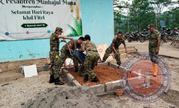 “ Dengan sarana dan prasarana olahraga yang memadai dan didukung kemauan yang keras dalam hal membina fisik tentunya kami berharap bisa melahirkan para generasi muda termasuk para santri yang sehat, kuat sehingga bisa menjadi bagian dari Pertahanan Negara. Dan sarana ini dibangun untuk menarik minat para santri yang memiliki cita cita atau bakat untuk mengabdi sebagai prajurit TNI, “ terang Letkol Arh Farauk Saputra, S.Sos.MMDS.