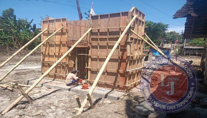 Di lapangan, para pekerja terlihat teliti merakit dan memasang papan bekisting yang diperkuat dengan penyangga bambu. Proses ini dilakukan secara gotong royong dan penuh kehati-hatian, agar hasil pengecoran nantinya dapat maksimal dan sesuai dengan standar konstruksi yang telah direncanakan.