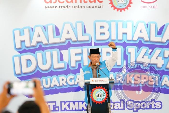 Hal tersebut disampaikan Kapolri usai menghadiri acara Halal Bi Halal Idul Fitri 1447 H bersama keluarga besar KSPSI AGN di PT KMK Global Sports, Tangerang, pada Selasa (14/4).