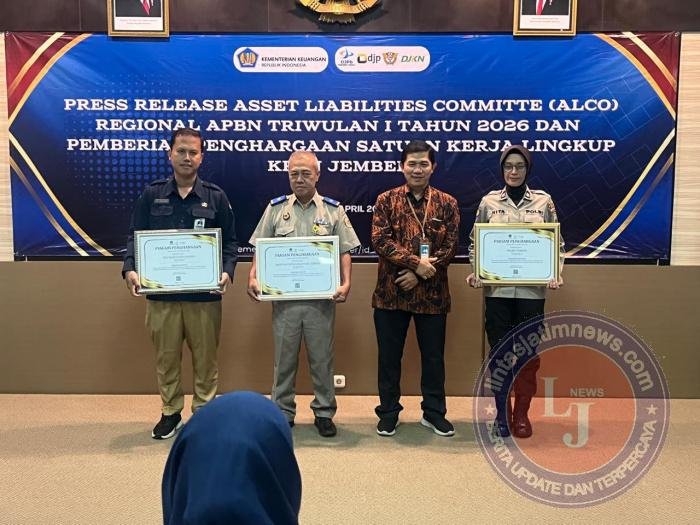 Dalam kegiatan press release Aset Liabilities Committee (ALCo) Regional APBN Triwulan I Tahun 2026, satuan kerja Polres Jember berhasil meraih tiga penghargaan sekaligus dari Kantor Pelayanan Perbendaharaan Negara (KPPN) Jember, Selasa, (14/4/2026)