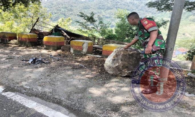 TRENGGALEK lintasjatimnews – Ruas Jalan Nasional Trenggalek–Ponorogo kembali dilanda longsor batu di KM 16 RT 09 RW 03 Dusun Pacar, Desa Nglinggis, Kecamatan Tugu, Kabupaten Trenggalek, Kamis (16/4/2026). Material batu berukuran besar dilaporkan jatuh dari tebing setinggi sekitar 50 meter dan menimpa kendaraan yang tengah melintas di jalur tersebut.