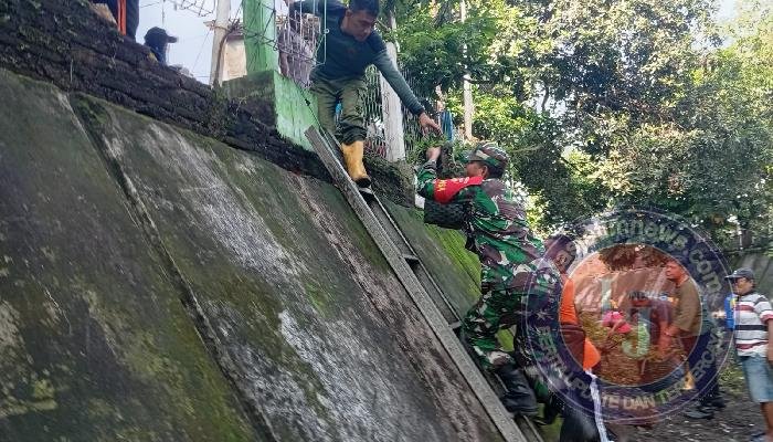Cegah Banjir, Babinsa Punggawan Bersama Warga Bersihkan Aliran Sungai