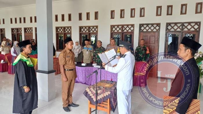 PACITAN lintasjatimnews.com – Upaya memperkuat Sinergi dengan pemerintah Desa, Danramil 0801/05 Nawangan Kapten Inf Agus Nuriadi menghadiri prosesi acara pelantikan dan pengambilan sumpah Kepala Dusun Jajar, bertempat di Balai Desa Sempu, Kecamatan Nawangan, kabupaten Pacitan, Jumat (17/4/2026).