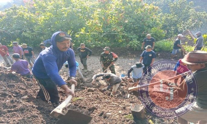 Proses pembersihan dilakukan secara manual dengan peralatan sederhana, mulai dari cangkul hingga sekop. Warga tampak antusias bergotong royong bersama Babinsa demi mempercepat penanganan longsoran tersebut.