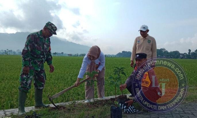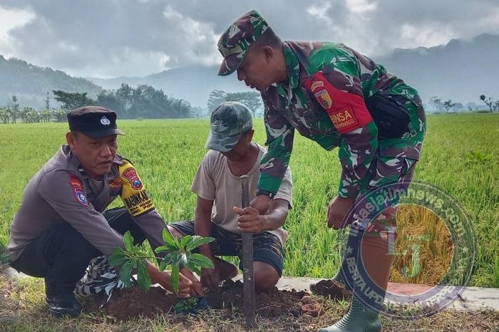 TRENGGALEK lintasjatimnews.com – Sinergitas antara TNI-Polri bersama pemerintah daerah kembali ditunjukkan melalui aksi nyata Gerakan Penanaman Pohon di sepanjang jalan Dusun Ceme, Desa Ngadirenggo, Kecamatan Pogalan, Kabupaten Trenggalek, Minggu (19/4/2026). Kegiatan ini melibatkan Babinsa, Bhabinkamtibmas, pemerintah kecamatan dan desa, relawan, serta masyarakat setempat.