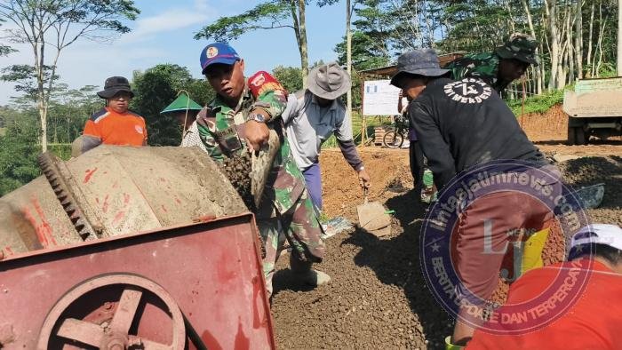 Tidak mengenal hari libur, pembangunan terus berjalan demi kepentingan masyarakat luas. Inilah wujud nyata kemanunggalan TNI bersama rakyat, hadir bekerja dan berjuang demi kemajuan desa.