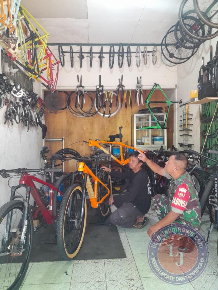 SURAKARTA lintasjatimnews.com – Dalam rangka melaksanakan Pembinaan Teritorial (Binter) dan implementasikan Pembinaan Pertahanan (Bintahwil) di wilayah binaan, Babinsa Jayontakan Koramil 03/Serengan Kodim 0735/Surakarta Serka Sudiyono datangi dan Motivasi Bapak Jupri pelaku UMKM yang keseharian berjualan Sepeda dan sekaligus bengkel sepeda
