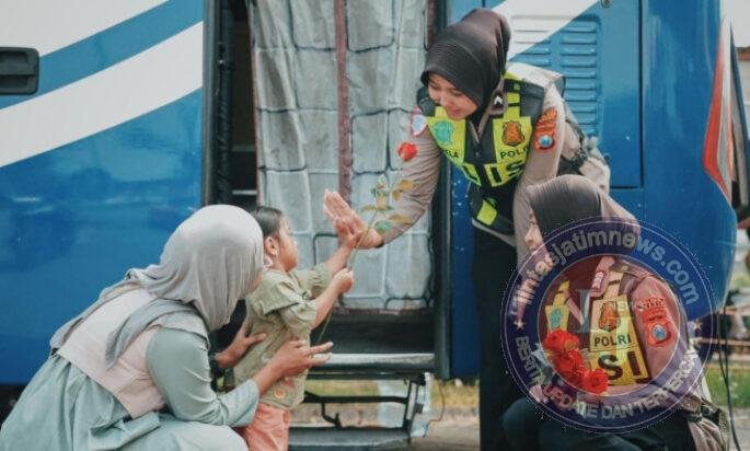 Peringati Hari Kartini, Srikandi Satlantas Polres Gresik Bagi Mawar dan Helm untuk Pemohon SIM Perempuan