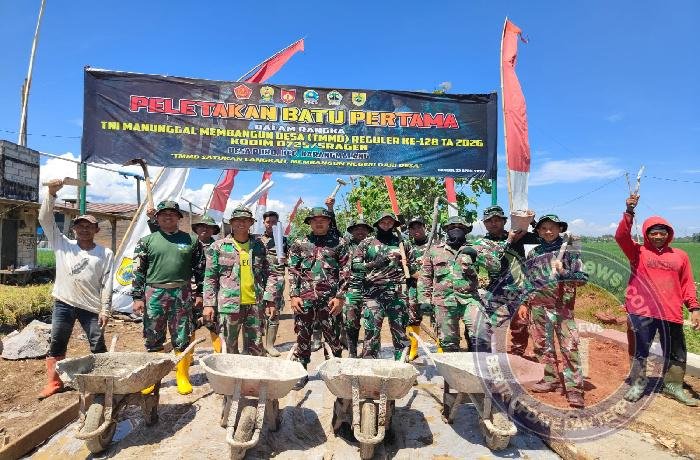 SRAGEN lintasjatimnews – Prajurit dari Batalyon Artileri Pertahanan Udara yang bermarkas di Semarang telah tiba di Sragen, kedatangan mereka bukan untuk berperang atau mencari musuh, namun mereka tergabung dalam Satgas TMMD Reguler ke 128 Kodim 0725/Sragen yang berlokasi TMMD Ds. Puro, Kecamatan Karangmalang, Kabupaten Sragen. Selama sebulan penuh mereka akan meletakkan senjata dan menggantikannya dengan cetok, cangkul, linggis dan gerobak Sorong. Kamis, 23/04/2026.