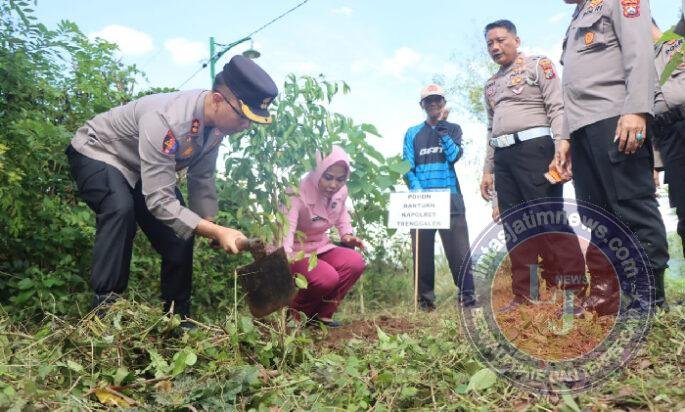 TRENGGALEK lintasjatimnews – Polres Trenggalek Polda Jatim menggelar aksi tanam ratusan pohon beringin di kawasan lahan kritis untuk menjaga sumber air di masa mendatang. Aksi ini dilakukan untuk memperingati Hari Bumi se dunia.