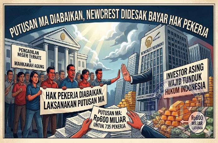 JAKARTA lintasjatimnews – Desakan keras dialamatkan kepada Newcrest Mining Limited, yang kini menjadi bagian dari Newmont Corporation, untuk segera melaksanakan putusan pengadilan terkait pembayaran pesangon kepada 735 mantan karyawan PT Nusa Halmahera Minerals (NHM). Hingga saat ini, kewajiban tersebut dinilai belum dijalankan meski telah berkekuatan hukum tetap.