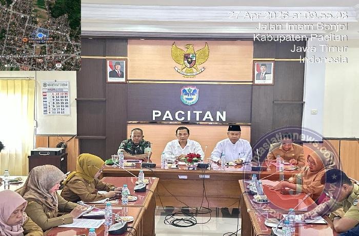 PACITAN lintasjatimnews – Dalam rangka mendukung pemerintah mengendalikan angka inflasi di seluruh Indonesia, Pemda Pacitan turut menggelar Rapat Koordinasi Tim Pengendalian Inflansi Daerah (TPID) dipimpin Kemendagri RI melalui virtual, bertempat di Ruang Rapat Bupati Pacitan, Kec./Kab. Pacitan, Senin (27/4/2026).