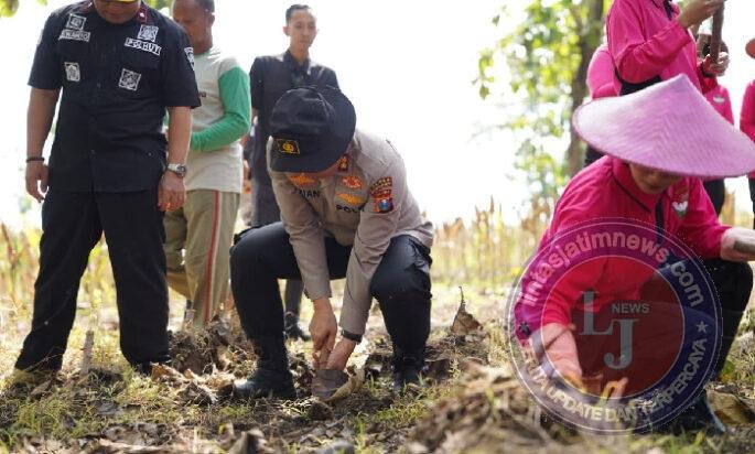 BOJONEGORO lintasjatimnews – Polres Bojonegoro Polda Jatim bersama pengurus YKB Cabang Bojonegoro menggandeng Perum Perhutani KPH Bojonegoro dan kelompok tani menggelar kegiatan penanaman jagung dan ketela.