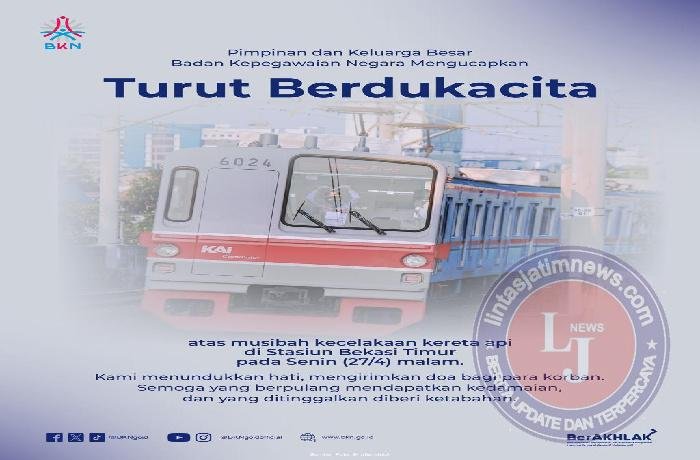 JAKARTA lintasjatimnews – Humas BKN, Badan Kepegawaian Negara (BKN) menyampaikan duka cita atas meninggalnya para korban dalam insiden kecelakaan kereta di Stasiun Bekasi Timur yang terjadi pada Senin malam, 27 April 2026. Salah satu korban tercatat merupakan Aparatur Sipil Negara (ASN) yang berprofesi sebagai guru, yakni Nurlaela dengan jabatan fungsional Guru Ahli Pertama yang bertugas di Sekolah Dasar Negeri Pulo Gebang 11, Jakarta Timur. Sebagai bentuk respons cepat, BKN bersama PT Taspen langsung berkoordinasi lintas instansi guna memastikan seluruh hak ASN yang terdampak dapat terpenuhi sesuai ketentuan manajemen ASN.