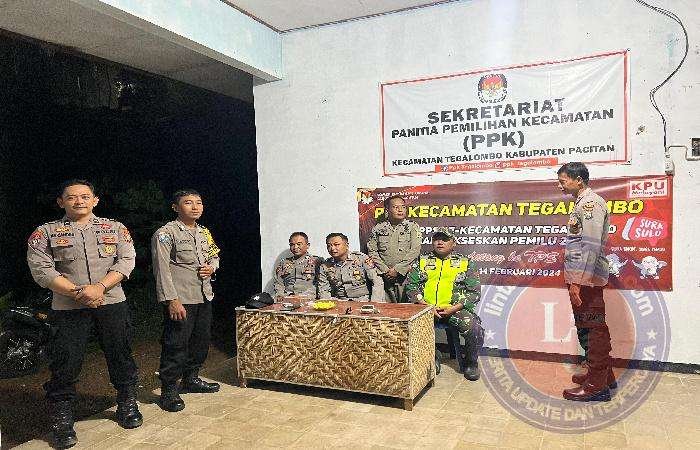 PACITAN lintasjatimnews.com – Anggota Koramil 0801/04 Tegalombo Kodim 0801/Pacitan turut berperan aktif dalam pengamanan kotak dan surat suara yang di simpan di sekretariat Kecamatan Kebonagung, Kab.pacitan, Sabtu (17/02/2024).