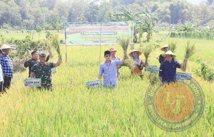 TRENGGALEK lintasjatimnews – Dengan penuh antusiasme dan optimisme, Dandim 0806/Trenggalek Letkol Czi Yudo Aji Susanto, S.Sos., M.A., bersama Bupati Trenggalek Mochamad Nur Arifin, turun langsung dalam acara panen padi hasil teknologi pertanian hemat air di Desa Sukorejo, Kecamatan Gandusari, Kabupaten Trenggalek, Sabtu (20/7/2024). Panen ini adalah bukti nyata bahwa inovasi metode pertanian hemat air mampu mengubah lahan demplot sawah kering yang sebelumnya tidak produktif menjadi lahan yang subur dan menghasilkan.