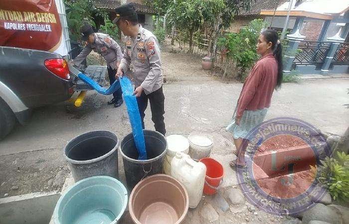Melihat kondisi itu, Polres Trenggalek dan seluruh jajaran Polsek tak pernah lelah berupaya membantu warga Masyarakat dalam memenuhi kebutuhan air bersih tiap hari.