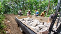 Wujud Peduli, Babinsa Ramil 0801/01 Pacitan Turut Berpartisipasi Bantu Warga Rabat Jalan Makam