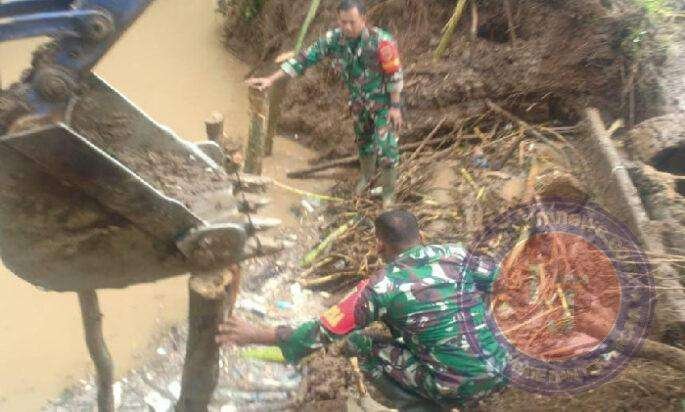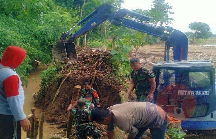 “ Kami dari Koramil Tipe B 0802/11 Bungkal ada 5 orang termasuk Babinsa Bancar bergabung bersama masyarakat, Bhanbinkamtibmas serta Pemdes Bancar gotong royong melakukan perbaikan tanggul yang jebol di areal persawahan Tempuran, ” ujar Babinsa Bancar.