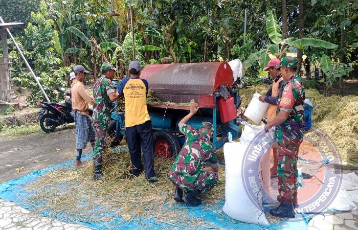 SRAGEN lintasjatimnews – Sertu Yono Supriyanto Babinsa Desa Pilangsari Koramil 12/Gesi Kodim 0725/Sragen bersemangat memimpin pendampingan panen padi menggunakan mesin Tleser di sawah milik Bp. Sri Widodo Poktan Tani Subur di Dk. Taraman RT. 13 Desa Pilangsari, Kecamatan Gesi .