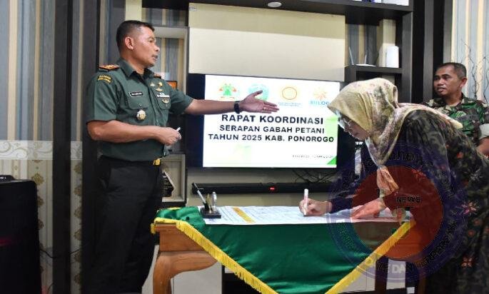 PONOROGO lintasjatimnews – Kodim 0802/Ponorogo hari ini menggelar kegiatan Rapat Koodinasi (Rakor) terkait Serapan Gabah (Sergab) petani dan Optimalisasi Pengolahan Gabah Kering Panen (GKP) tahun 2025 Kabupaten Ponorogo bertempat di Ruang Lobby Makodim 0802/Ponorogo Jl. Basuki Rahmad No. 38 Kota / Kabupaten Ponorogo, Kamis (10/04/2025).