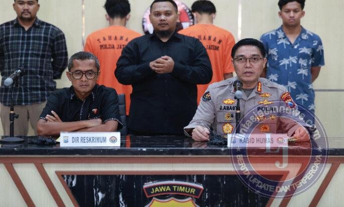 Sementara itu Dirreskrimum Polda Jatim, Kombes Pol Widi Atmoko, S.I.K., M.H., menegaskan bahwa para pelaku telah menyebarkan konten fitnah di media sosial dan berupaya memanfaatkan tekanan publik untuk memeras korban.