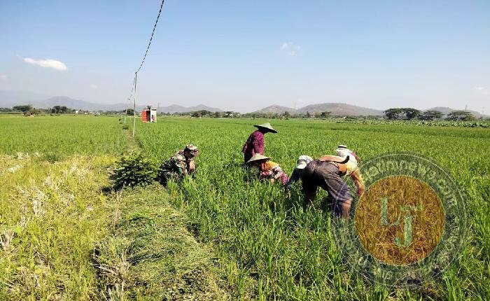 “ Penyiangan gulma pada tanaman padi ini merupakan salah satu tahap dalam perawatan padi dan ini penting dilakukan agar tanaman terus subur dan tumbuh optimal serta menghasilkan panen yang melimpah, “ terang Babinsa Desa Purworejo.
