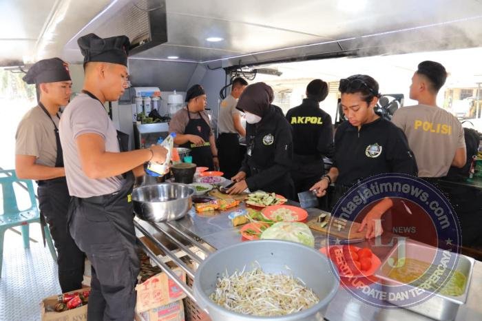 Taruna Tingkat III Akademi Kepolisian, Intan Gustava Rongrean, menyampaikan bahwa dapur lapangan tersebut menyiapkan berbagai menu makanan bergizi untuk masyarakat.