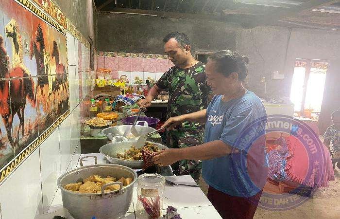 ” Kami hanya bisa membantu dengan membuatkan makanan untuk satgas dan warga yang kerja bergotong royong, InsyaAllah kita ikhlas masak untuk mereka ”, ucap Satiyem yang rumahnya menjadi dapur umum untuk Satgas.